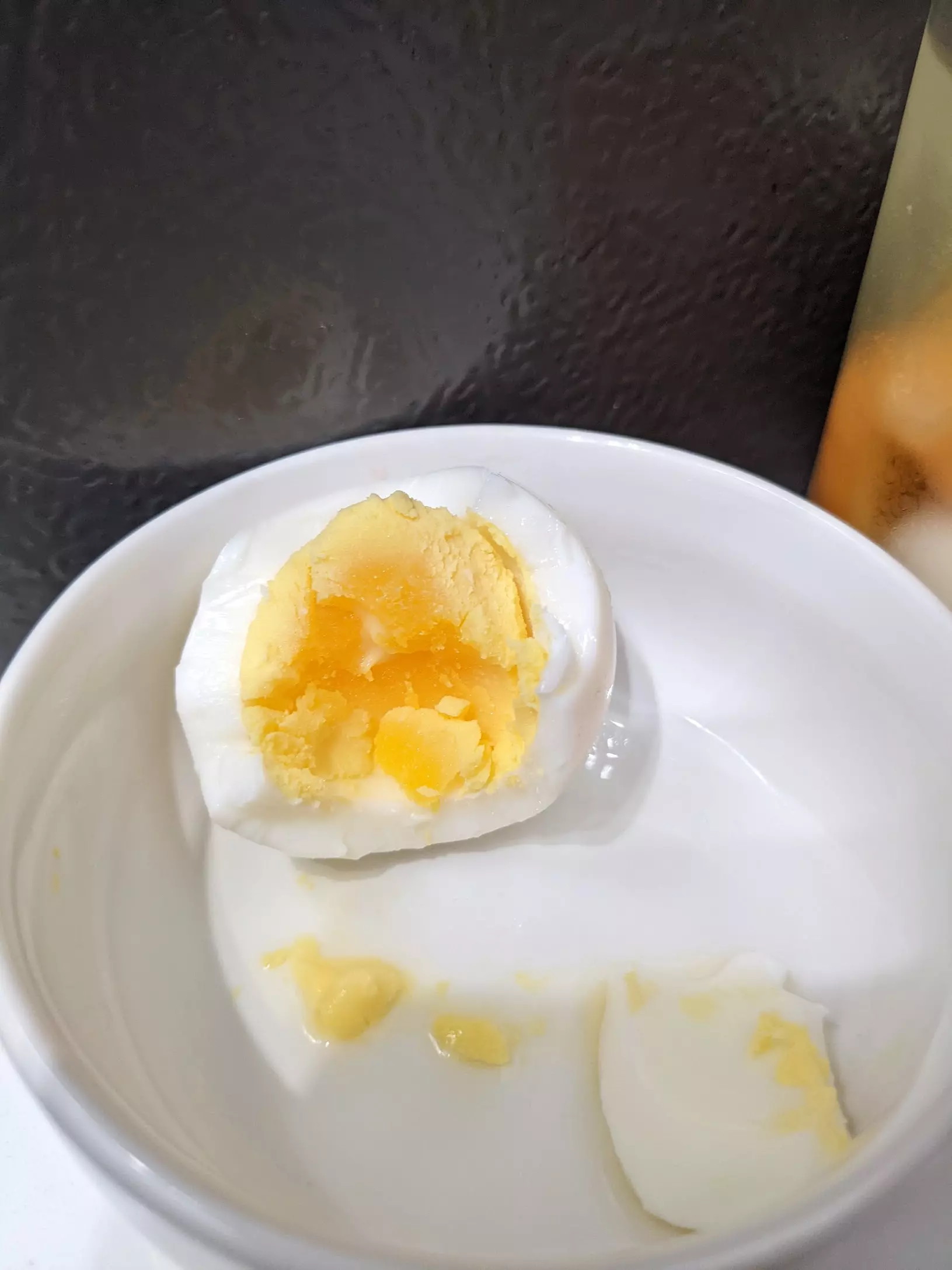- 12 minutes: Mostly cooked yolk, still a tiny bit of softness
